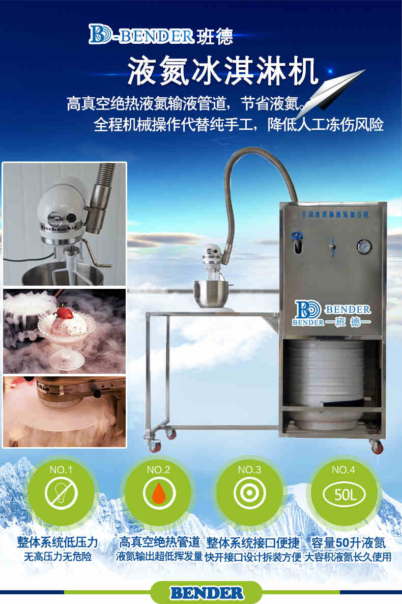 班德 結(jié)合國(guó)內(nèi)冰淇淋行業(yè)情況開發(fā)的冰淇淋液氮加注機(jī)具有操作簡(jiǎn)單,使用方便,成本低等優(yōu)點(diǎn)。